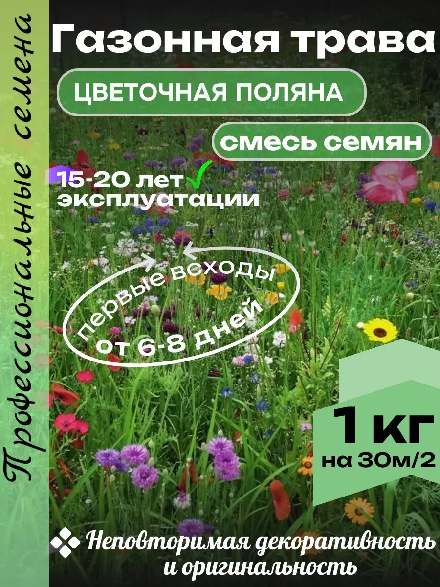 Газонная трава "Поляна цветов" - неповторимая декоративность и оригинальность внешнего вида. Самых неприхотливый.